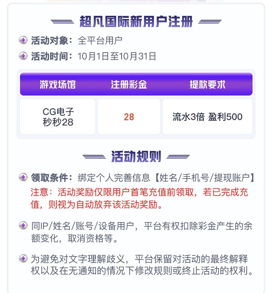新用户注册下载完善资料优惠大厅里自助领取28